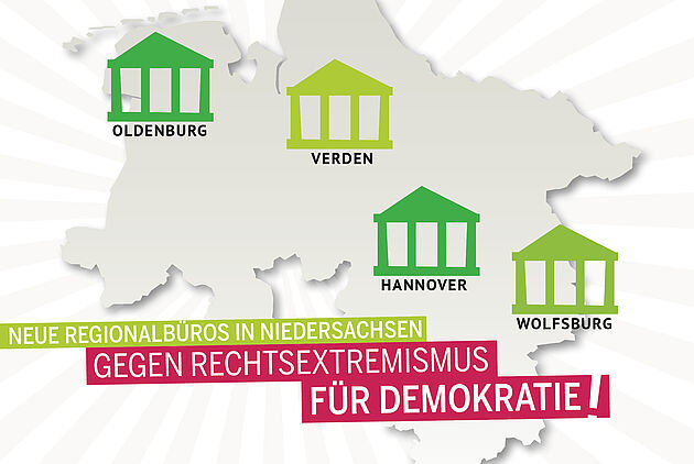 Die drei Träger der neuen Regionalbüros sind erfahren und seit Jahrzehnten in dem Bereich tätig, darüber hinaus in der Zivilgesellschaft vernetzt und bekannt. Sie werden vom Landes-Demokratiezentrum Niedersachsen mit jeweils 100.000 € mit Mitteln des Bundesministeriums für Familie, Senioren, Frauen und Jugend unterstützt.